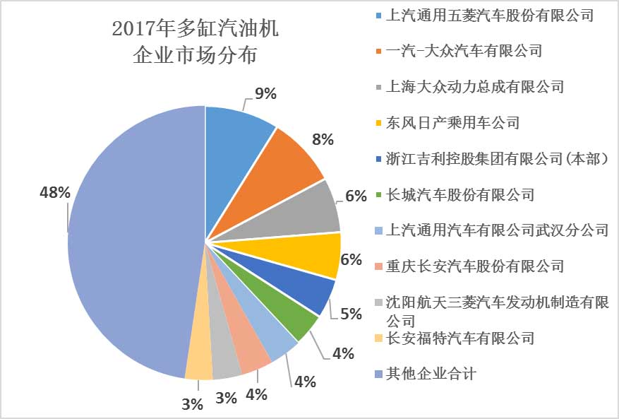 多缸汽油机全年销量同比小幅增长。多缸汽油机12月销售226.33万台,环比下降4.23%,同比下降2.61%,全年累计销量2305.31万台,同比累计增长3.23%。上汽通用五菱、一汽大众、上海大众动力总成等十家销量排在前列,其总体销量占行业销量半壁江山,达到了52.36%。上通五菱、东风日产、吉利、上通武汉、东风本田汽车累计销量增幅较为明显,涨幅在10%-83%。多缸汽最主要配套在乘用车领域,占比达到95.16%,12月销售216.48万台,环比下降4.56%,同比下降3.84%,全年累计销量2193.70万台,同比累计增长3.34%。