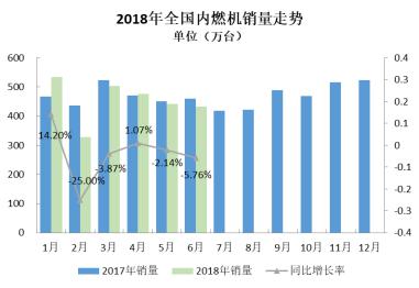 根据中国内燃机工业协会《中国内燃机工业销售月报》数据,2018年6月全国内燃机销量延续了5月的下降,市场表现较为平淡,1-6月整体表现较为稳定,与上年同期比略有下降,基本符合预期。