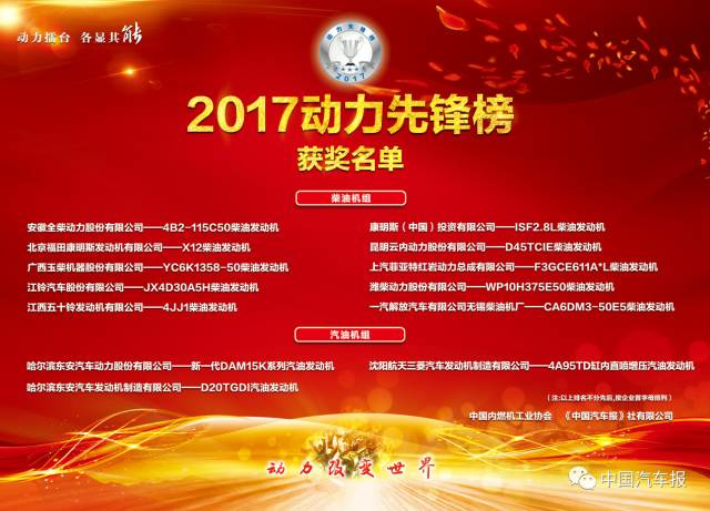 “2017动力先锋榜”已是第八届 “年度发动机”评选活动。自2010年起,《中国汽车报》社、中国内燃机工业协会开始共同合作举办“年度发动机”评选活动,至今已成为国内汽车发动机领域最为权威的评选活动,受到国内外发动机行业、汽车行业、权威机构及媒体的高度关注,取得显著的社会效应。