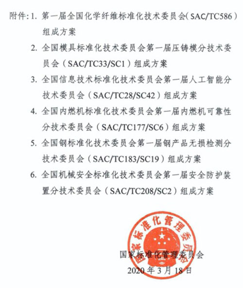 祝贺全国内燃机标准化技术委员会内燃机可靠性分技术委员会成立,编号